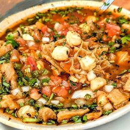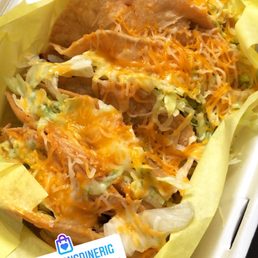 Fried pork, guacamole, sour cream, and pico de gallo.